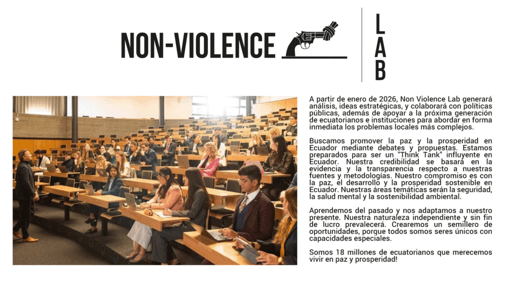 Programa” Embajadores No-Violencia” estará conformado por representantes de la sociedad civil ecuatoriana, como empresarios, deportistas y artistas que aportarán con soluciones a los graves conflictos que enfrentamos, y serán voceros ante la comunidad internacional. Los ecuatorianos merecemos volver a vivir en paz y prosperidad, y estamos enviando un mensaje poderoso de no violencia y unidad a todo el mundo. Si a Ecuador le va bien, a todos les va bien!
